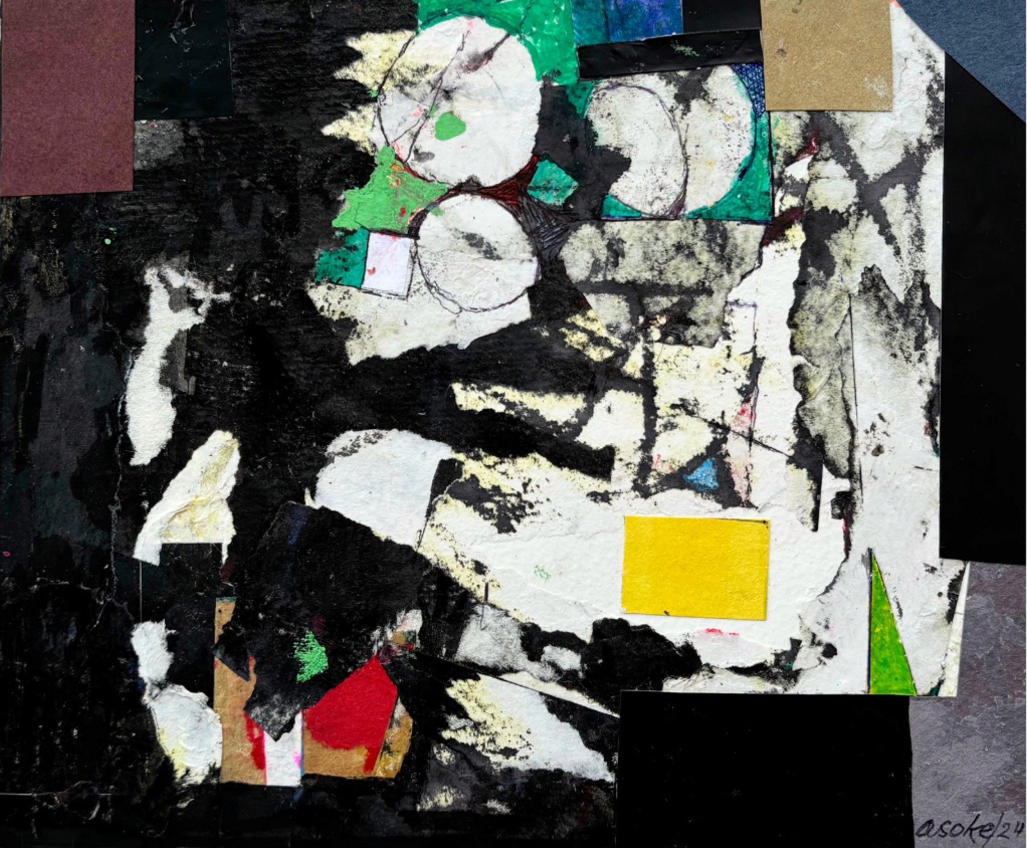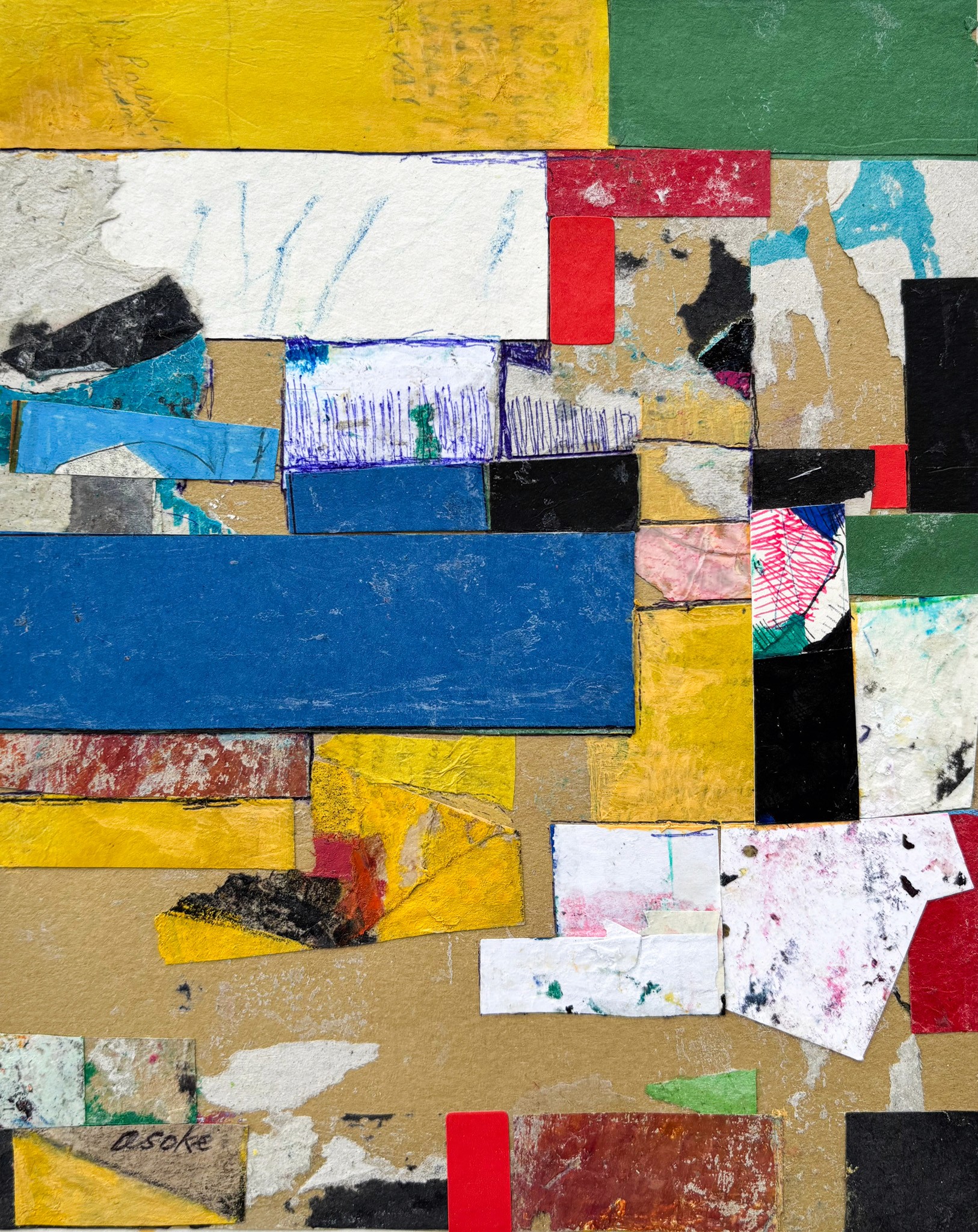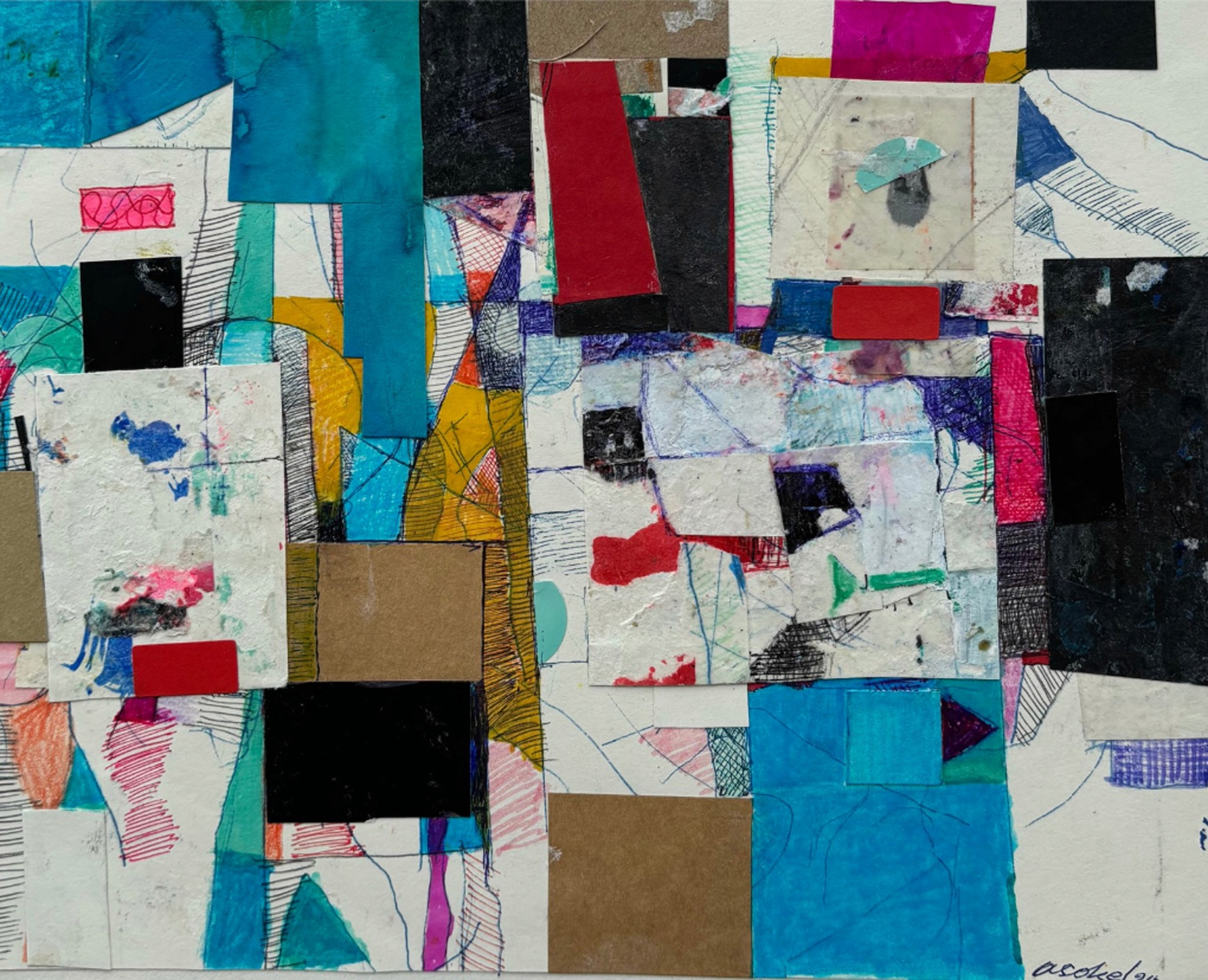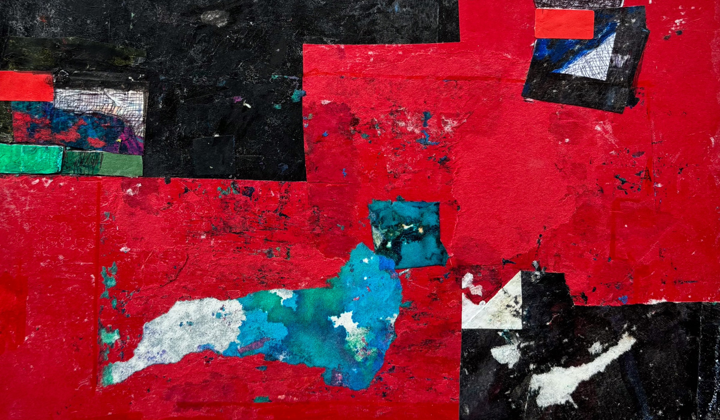 AA. Whenever I created with too much intent, the result often felt contrived and uninspiring. But I learned to embrace “happy accidents”—the unplanned moments that revealed something new. I began saving everything: scraps of paper, textures, bits I’d written or pasted. Anything with character.