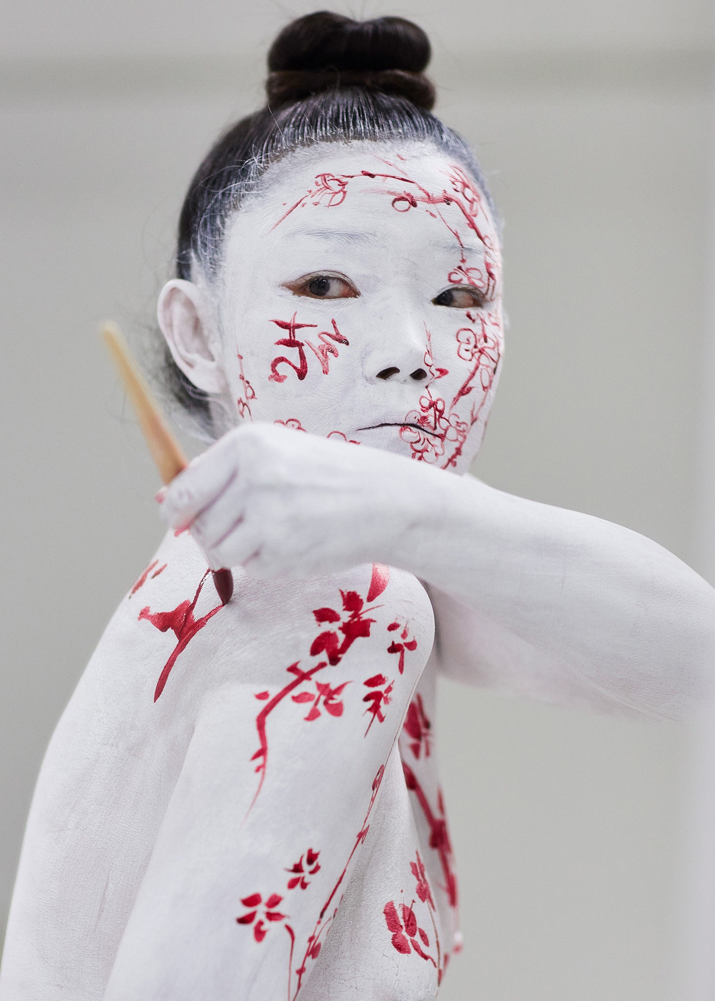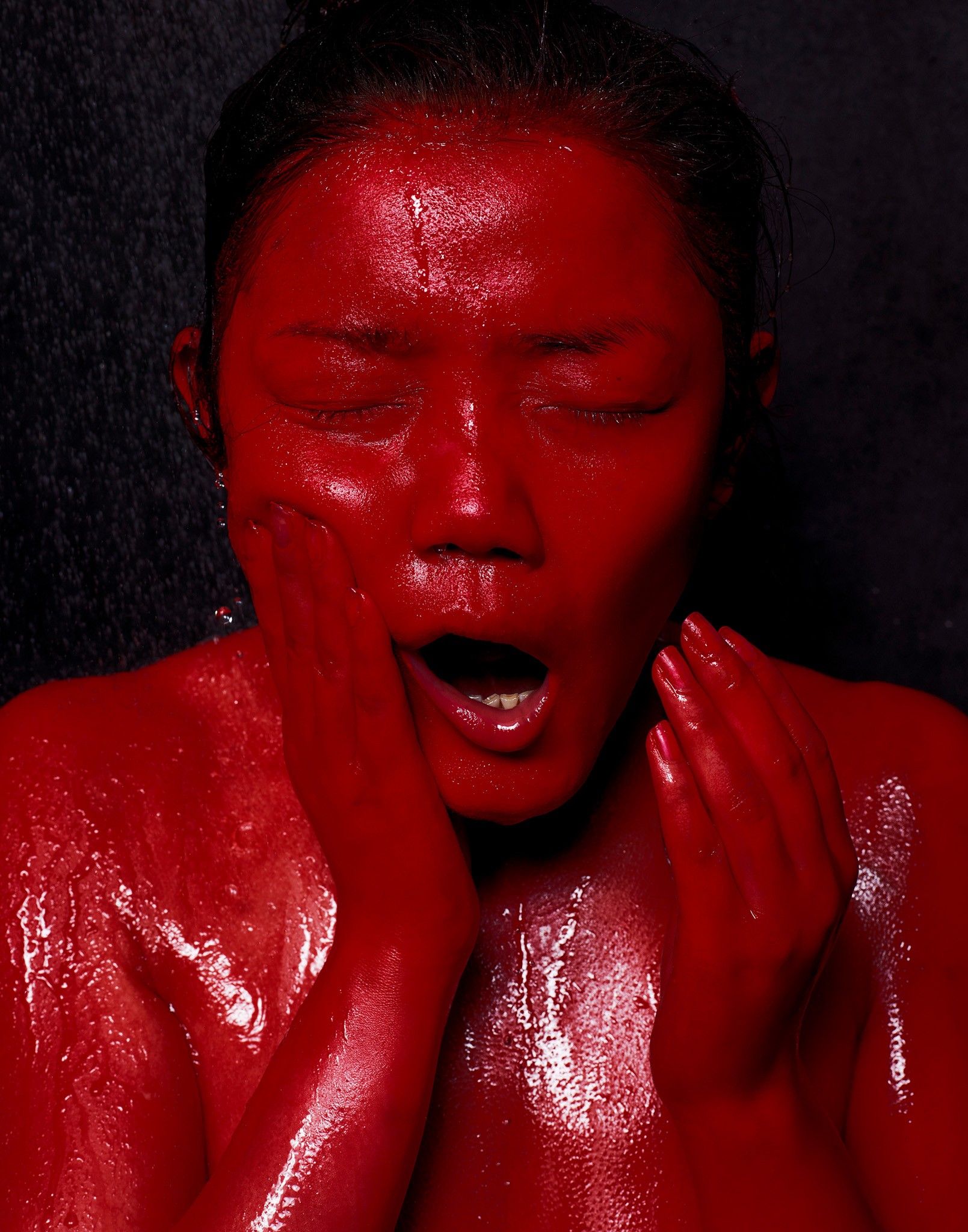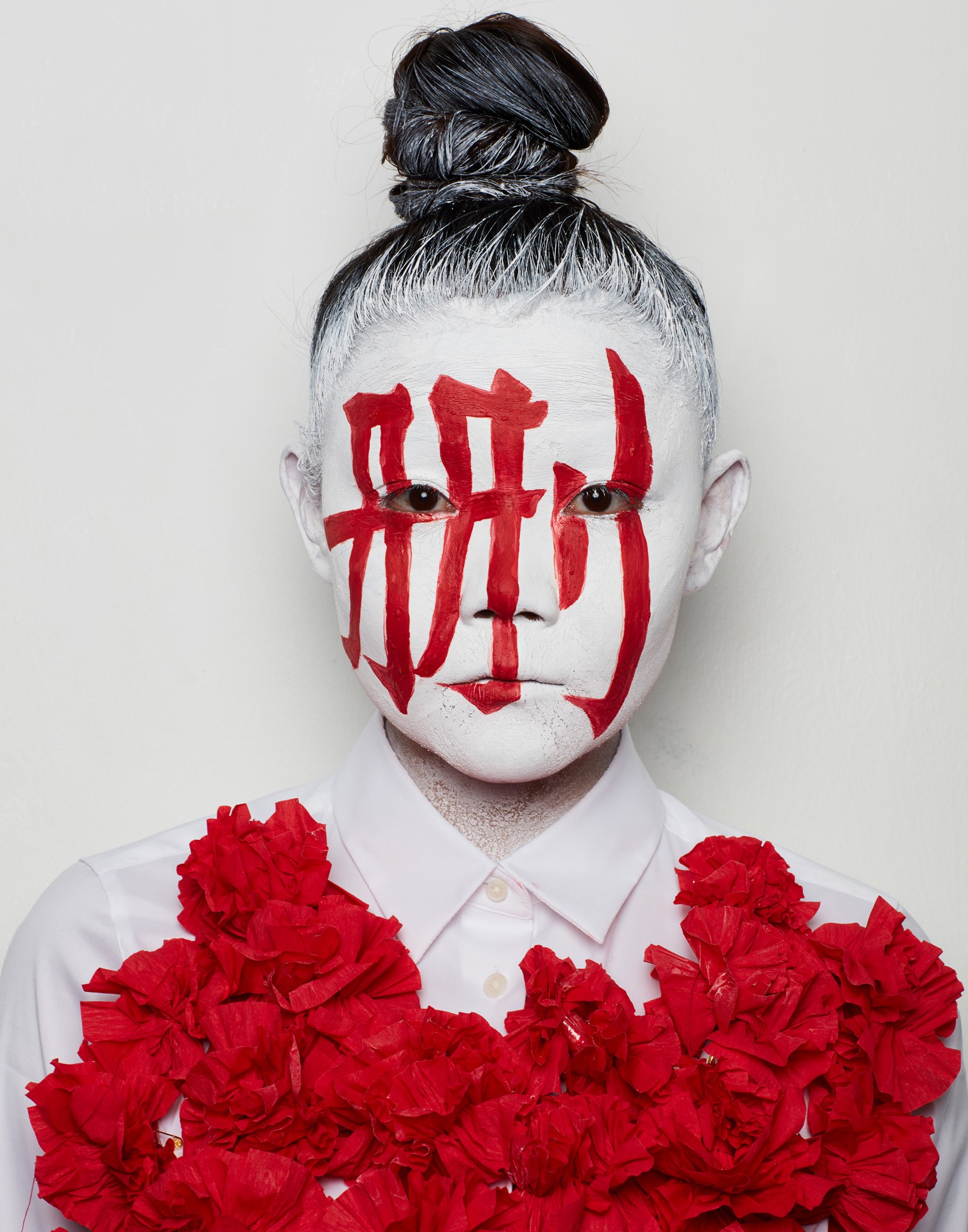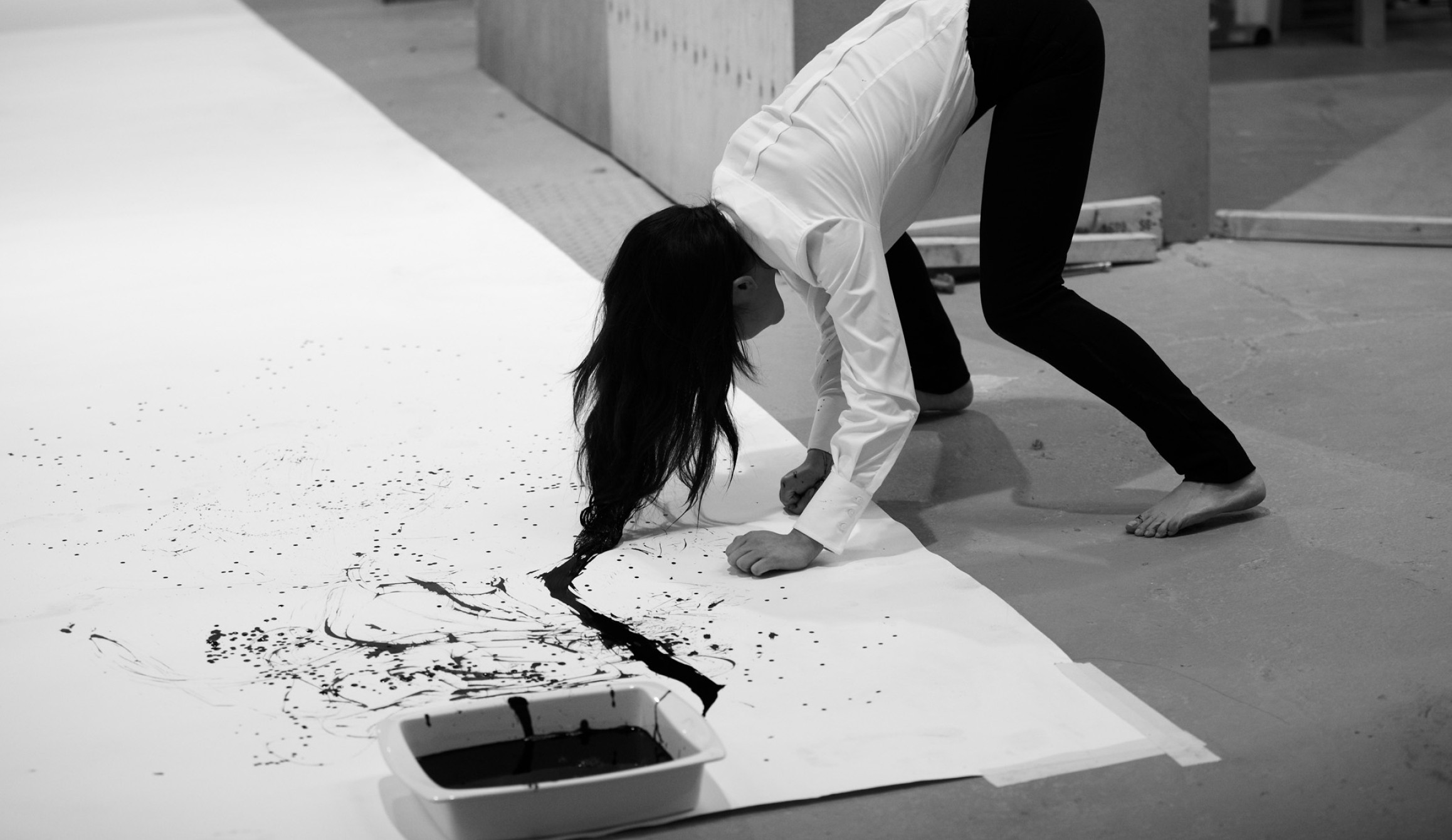 Ink has been the constant thread, connecting all points. The smell takes me back to my grandfather’s humble, self-built studio, where he practiced Chinese calligraphy. The fluidity runs like my blood. Red lipstick was used in Little Red Flower, where I revisited my kindergarten years from 4 to 7. I was once a very proud red flower, often representing my year, school, even my city, performing about Communist beliefs. But in 2011, after visiting Russia, I began to question many of my childhood heroes and global consumer culture. So, I covered my entire body with different brands of red lipstick. Same as breast milk-three months after giving birth, my first performance with a mother’s body, my strange, swollen breasts. Many times, decisions are raw and practical. I was breastfeeding. I produced a lot of milk. So that was my fountain, a natural gift, white ink.