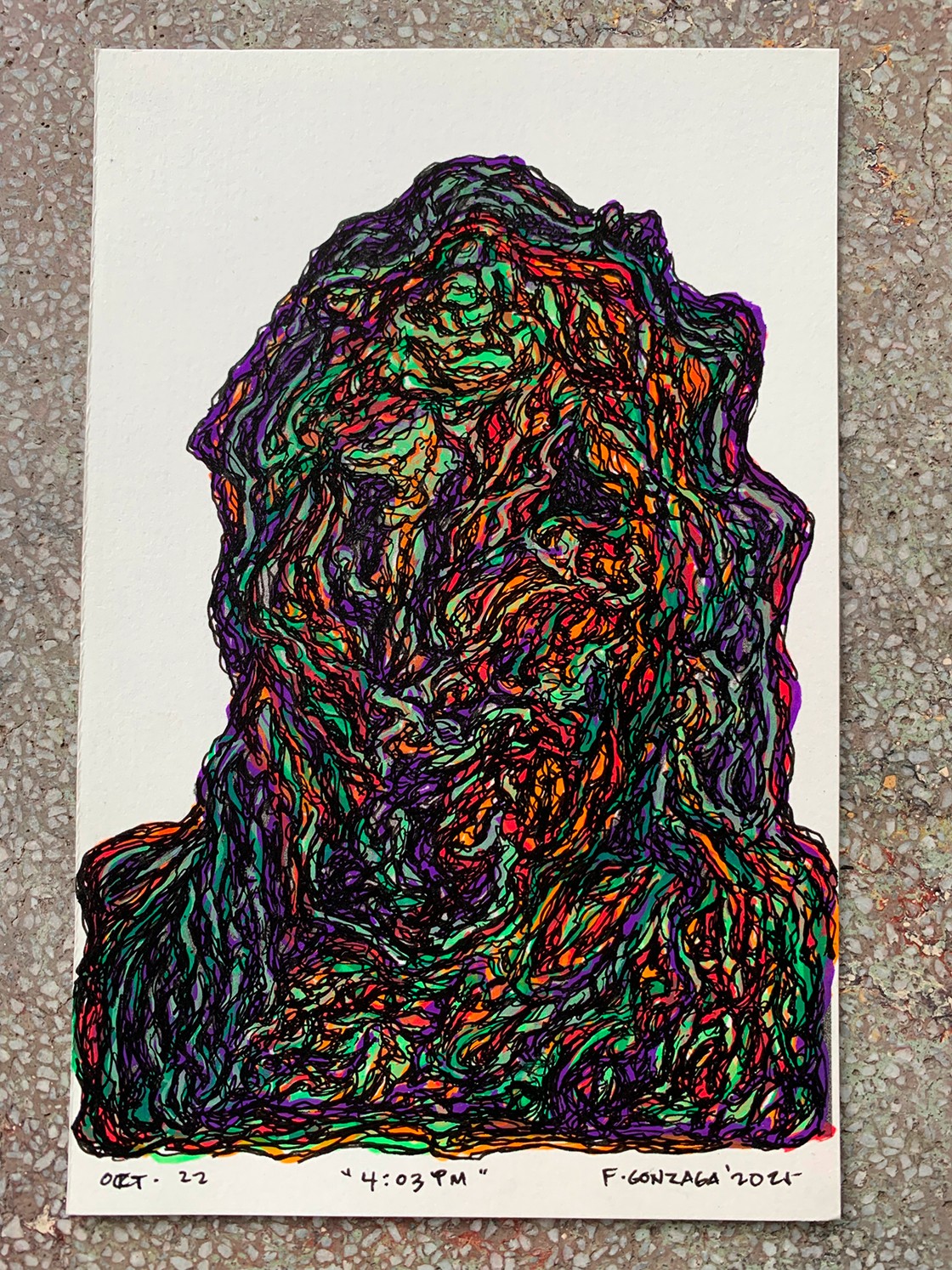 FG. Around 2003, I saw my wife, who was my girlfriend then, preparing a school project using oil paint. At that time, I had a music gig and decided to paint an image on my shirt. I bought a few tubes of oil paint and brushes, painted the shirt, and left it under the sun to dry. When I went to wear it later that afternoon, it was still wet. That moment fascinated me and made me curious about the medium.