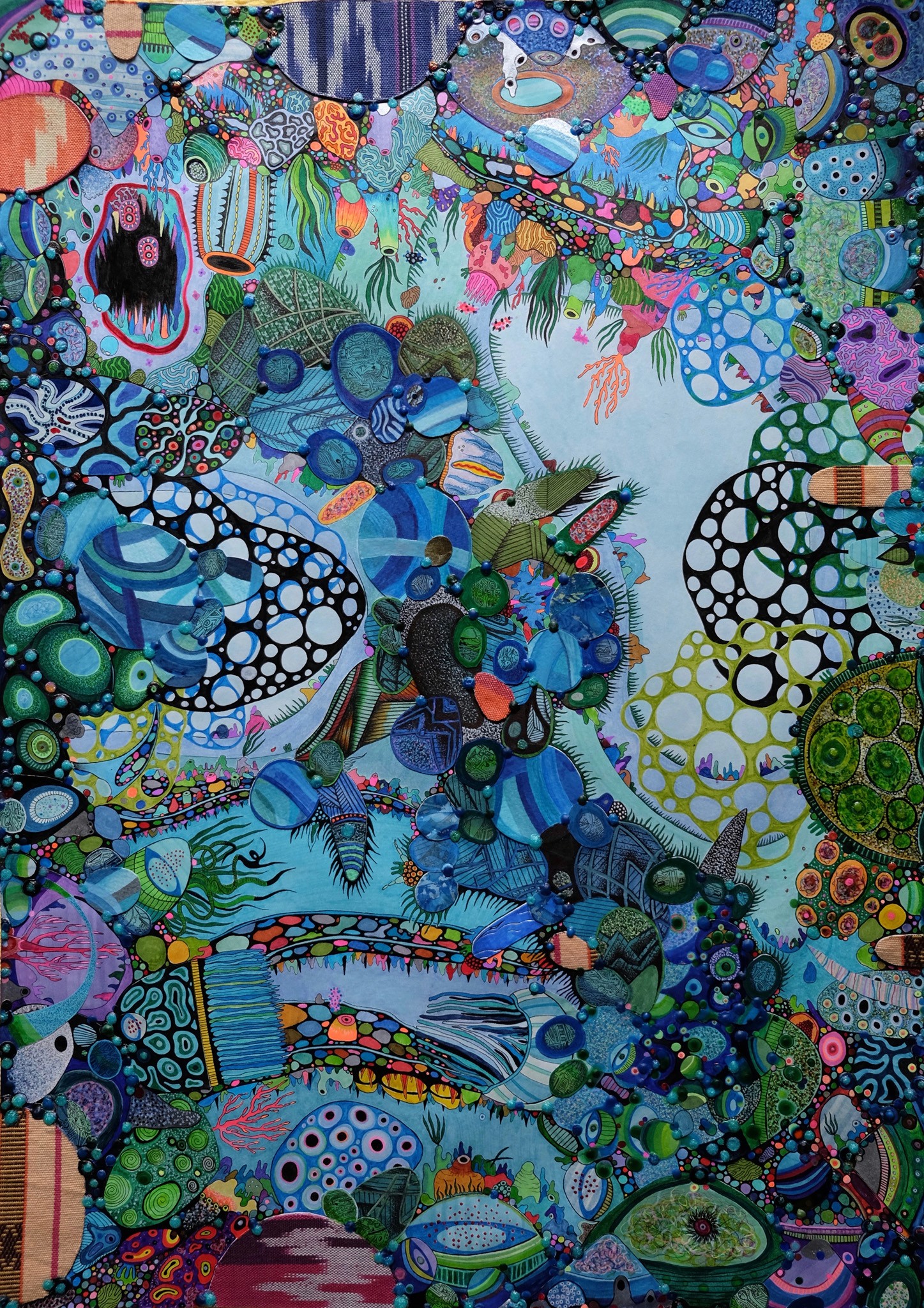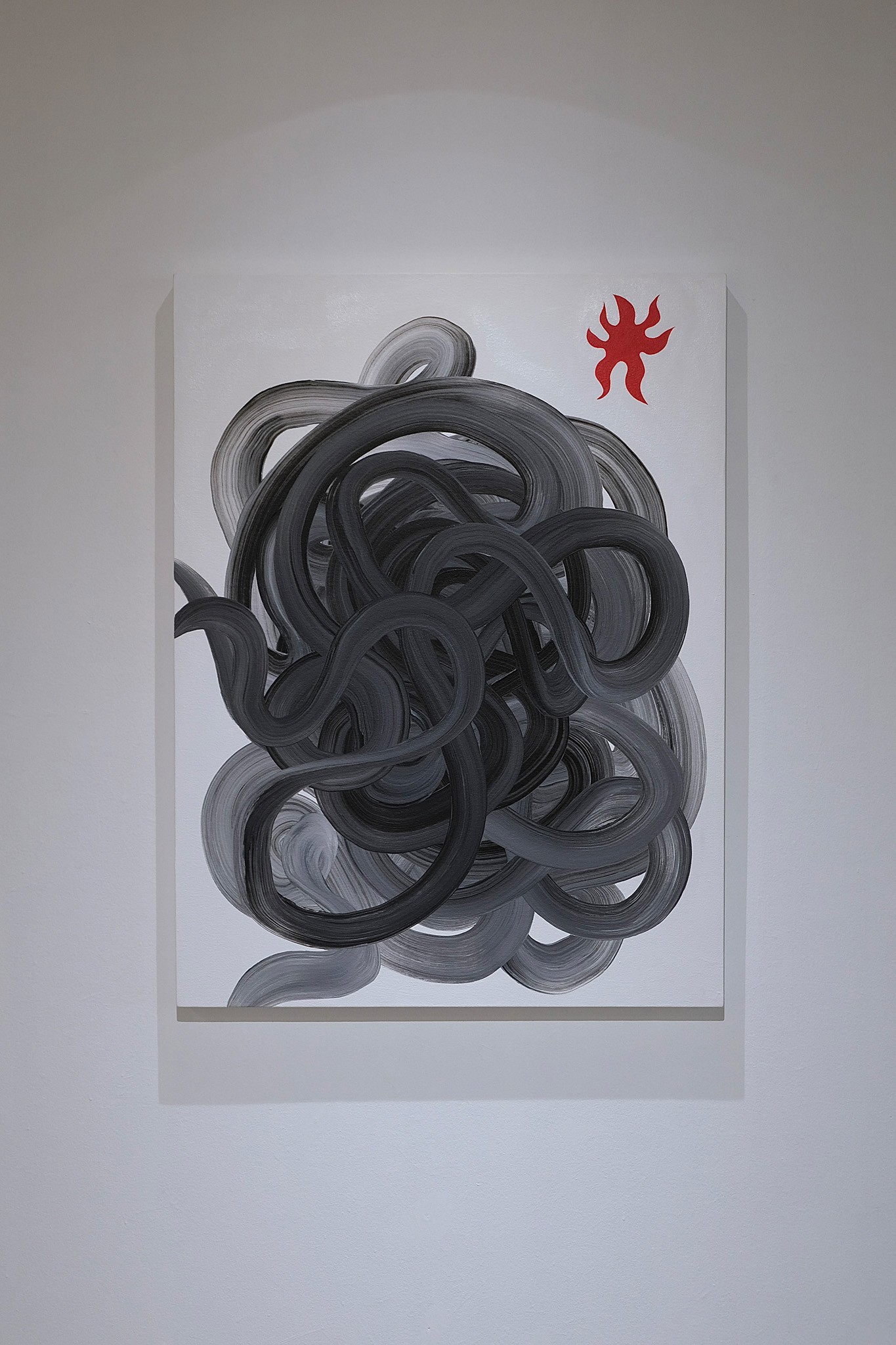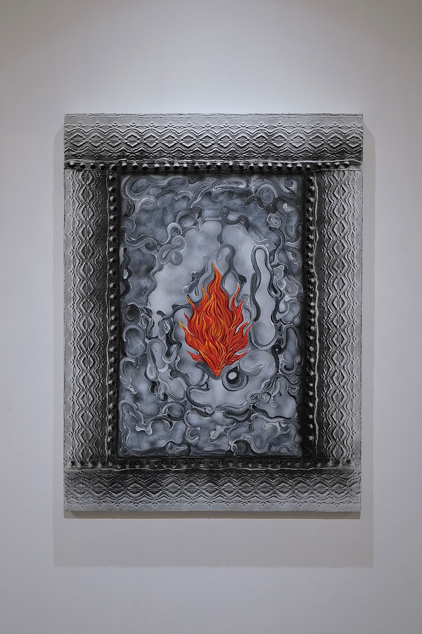 KO. “Divine Dichotomy” seeks to evade classification as a strictly formal or thematic exploration. It articulates lived tensions and questions the paradoxes inherent in hybrid subjectivity. As a practitioner influenced by diverse cultural backgrounds, this experience of being in between is fertile and disorienting. It created friction that sparked the essence of the work that arises from this internal landscape. The canvas serves as a space to express contradictions: the desire for coherence in the face of differences and the quest for autonomy while being drawn in and building from inherited systems. The series dwells within them rather than seeking to reconcile or resolve. The woven elements, traditional textile idioms, are re-situated within contemporary mixed-media contexts and serve as both material and metaphor, foregrounding the simultaneity of continuity and rupture. These gestures resist narrative closure; instead, they propose paradox as a generative methodology that privileges entanglement over clarity and multiplicity over synthesis. “Divine Dichotomy” functions as both aesthetic inquiry and epistemological stance that insists on the validity of ambiguity and the necessity of spaces where contradiction is acknowledged and made productive. This is not a retreat from coherence but an invitation into a more capacious understanding of self, history, and form where difference is not a problem to be solved but a living condition.