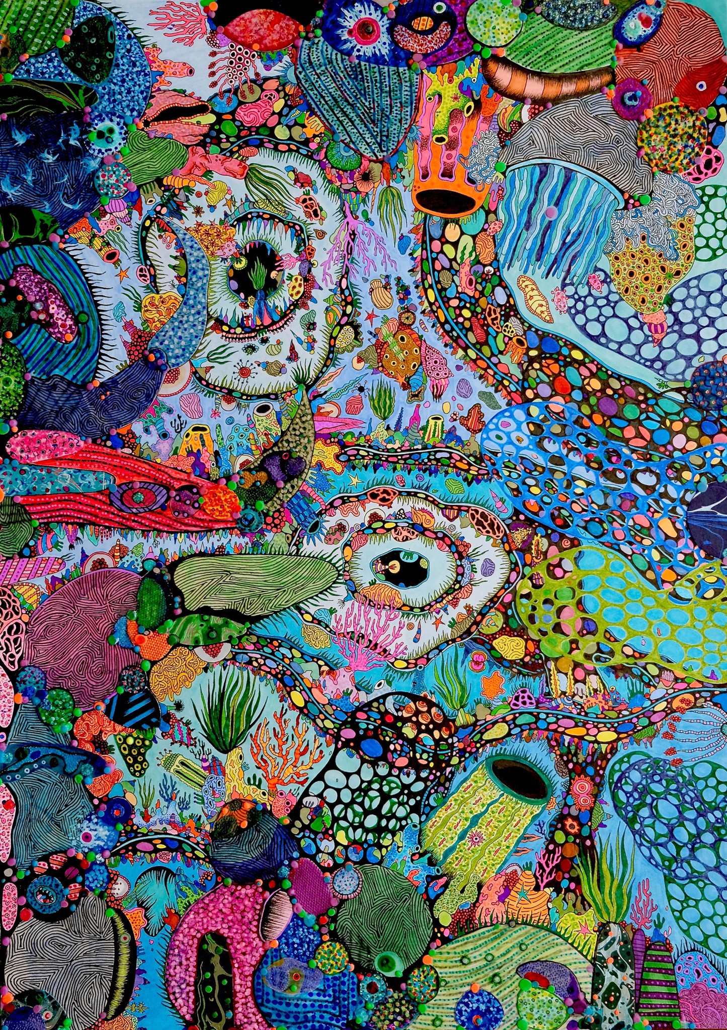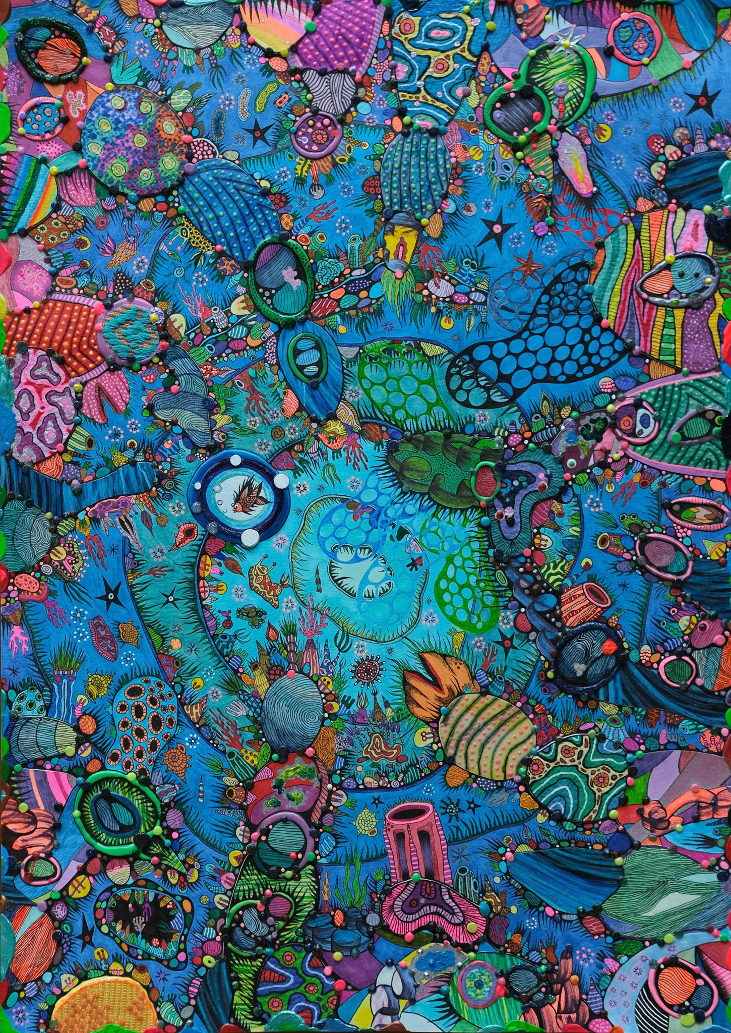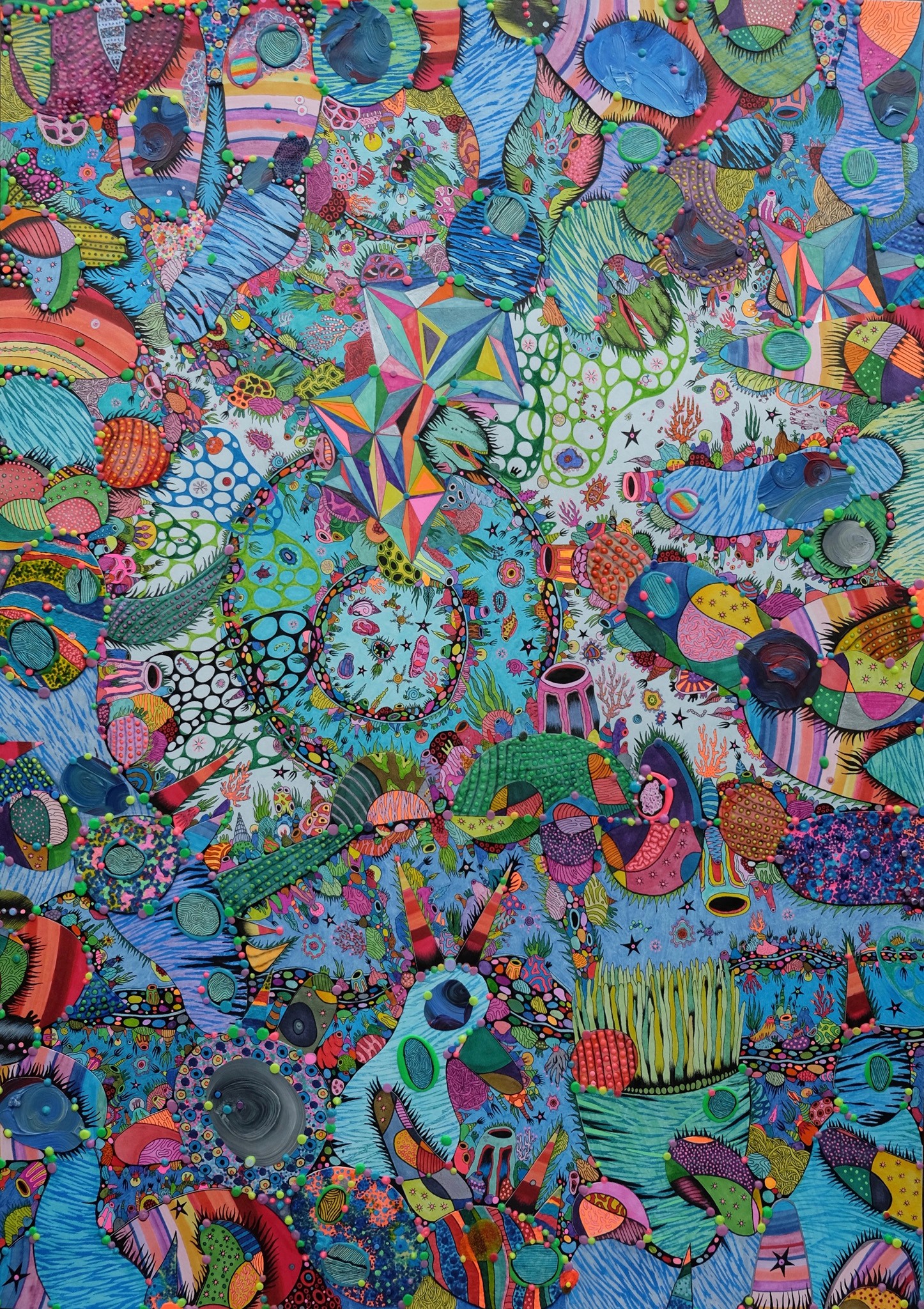 KO. The “Aquarium” series emerged during profound global stillness and introspection. The COVID-19 pandemic imposed physical and psychological enclosures, disrupting habitual rhythms and severing access to the external world, communal spaces, and material resources. It constituted a rupture transcending geographic, political, cultural and psychological borders. The experience of isolation became a phenomenon enacted on a world stage, collective, synchronised, and profoundly disconcerting. Within these constraints, the domestic interior became a site for internal excavation, and the imposed stillness intensified recurring visual motifs that reflected inner states and external socio-political conditions. The Philippines had one of the longest lockdowns in the world, and the containment sparked deeper engagement with symbolic language, material sensitivity, and emotional resonance that navigated themes of detachment, voyeurism, and the fragility of constructed psychological, architectural, and ecological environments. Then came the metaphor of an aquarium: a transparent boundary containing a living ecosystem that allows for observation without much participation, encapsulating a condition of suspended visible separation. The aquarium operated not merely as a personal metaphor but as a structural analogue to broader social dynamics: containment, surveillance, alienation, and tenuous trust in systems of care and governance. Among these, the coral emerged as a potent symbol. This sessile organism often displays its most vivid and fluorescent colouration under duress or upon the brink of death before bleaching. The coral embodies a paradox: the saturated colours of life on the verge of total collapse into the unknown. This became a powerful metaphor for individual and collective endurance and further articulated the surreal vibrancy of isolation, the strange clarity that emerged from stillness, the intensity of interior worlds, and the haunting beauty of resilience forged under pressure. What began as a meditation on solitude has since evolved into a broader inquiry into constructing and negotiating thresholds. The series asks what it means to inhabit a porous world where interior and exterior, visible and invisible, self and other, continually intersect and blur. As we collectively navigate the aftermath, visibility, care, and connectedness questions remain urgent. In this way, the “Aquarium” series can be an ongoing conceptual framework to explore the fragile architecture of contemporary experience.