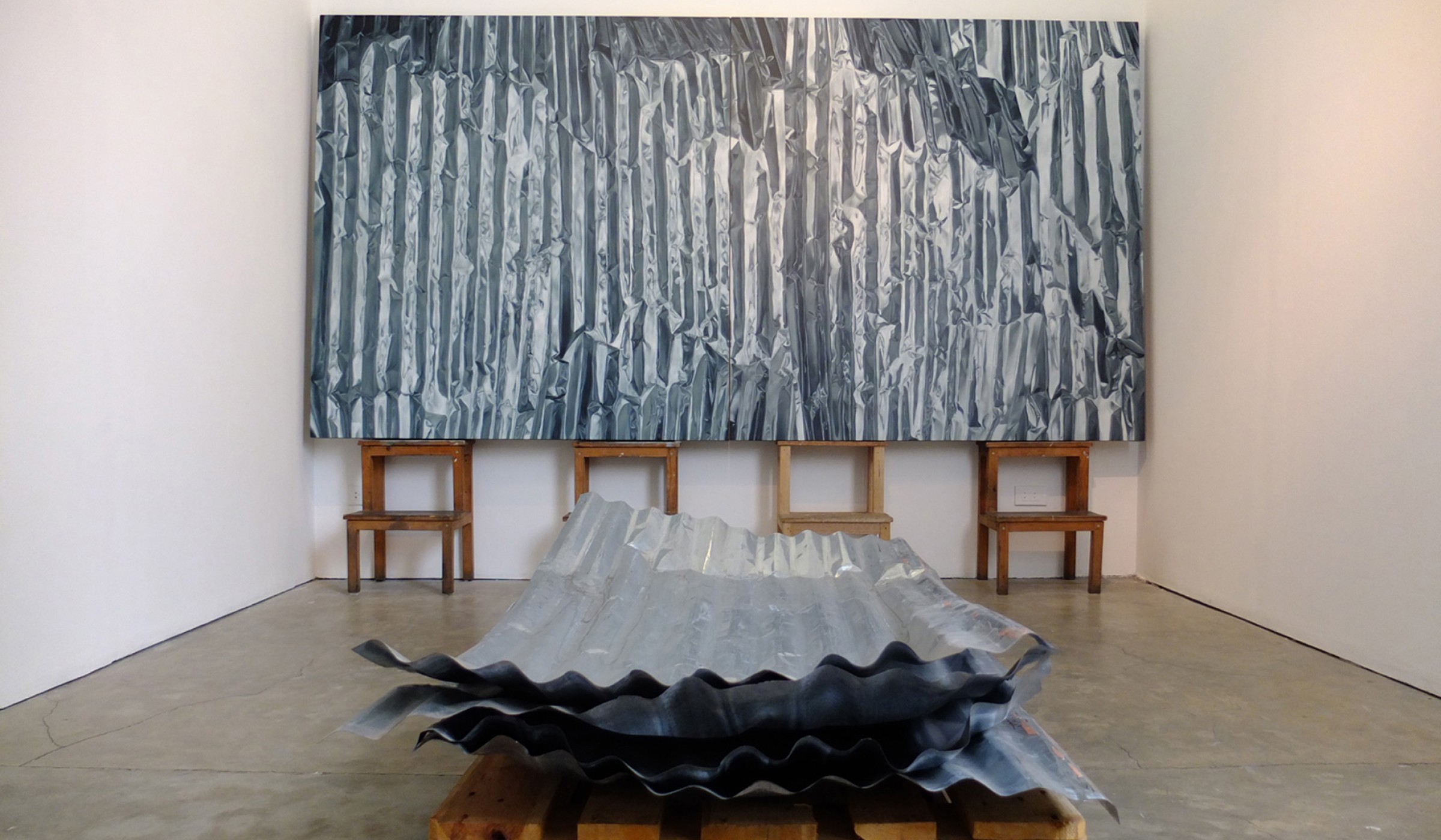 CNTRFLD. In The Flowers are Blooming Again, But They Have No Scent, you explore labour-intensive processes like silkscreen printing and oil painting to replicate industrial materials. What is it about every day, utilitarian objects that resonates with your artistic vision?