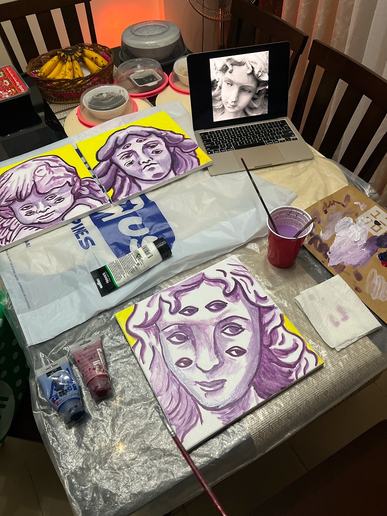Interdisciplinary artist Chanel Pepino brings a research-driven approach to her practice. Working across painting, performance, installation, and video, Pepino explores the intersections of Roman Catholic imagery, Philippine culture, and personal narrative.