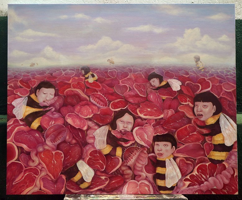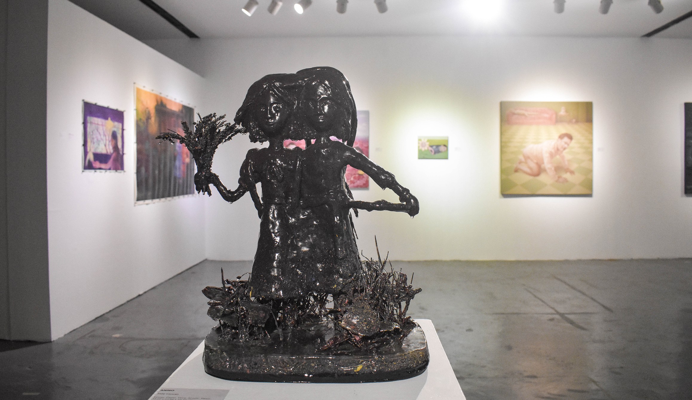 Among the participants, Bacolod-born artist Hanna Joy Sayam presents works that blend surreal imagery with systemic critique. Her dreamlike scenes—often populated by human-animal hybrids—explore how systems of power quietly shape behaviour and social conditioning.